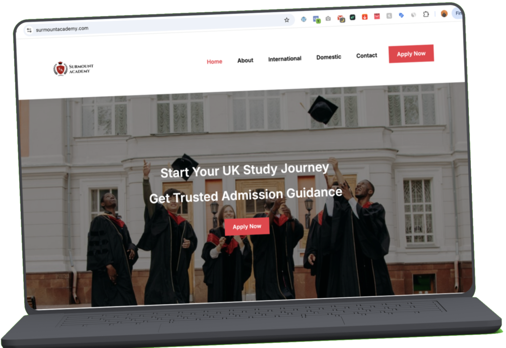 We designed and developed a professional, user-friendly website for Surmount Academy Ltd to establish a strong online presence and clearly communicate their educational consultancy services.