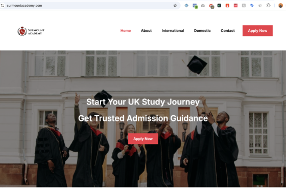 We designed and developed a modern, professional website for Surmount Academy Ltd, focused on clarity, credibility, and user experience. The goal was to create a strong digital presence that reflects the academy’s values while making information easy to access for students and parents.